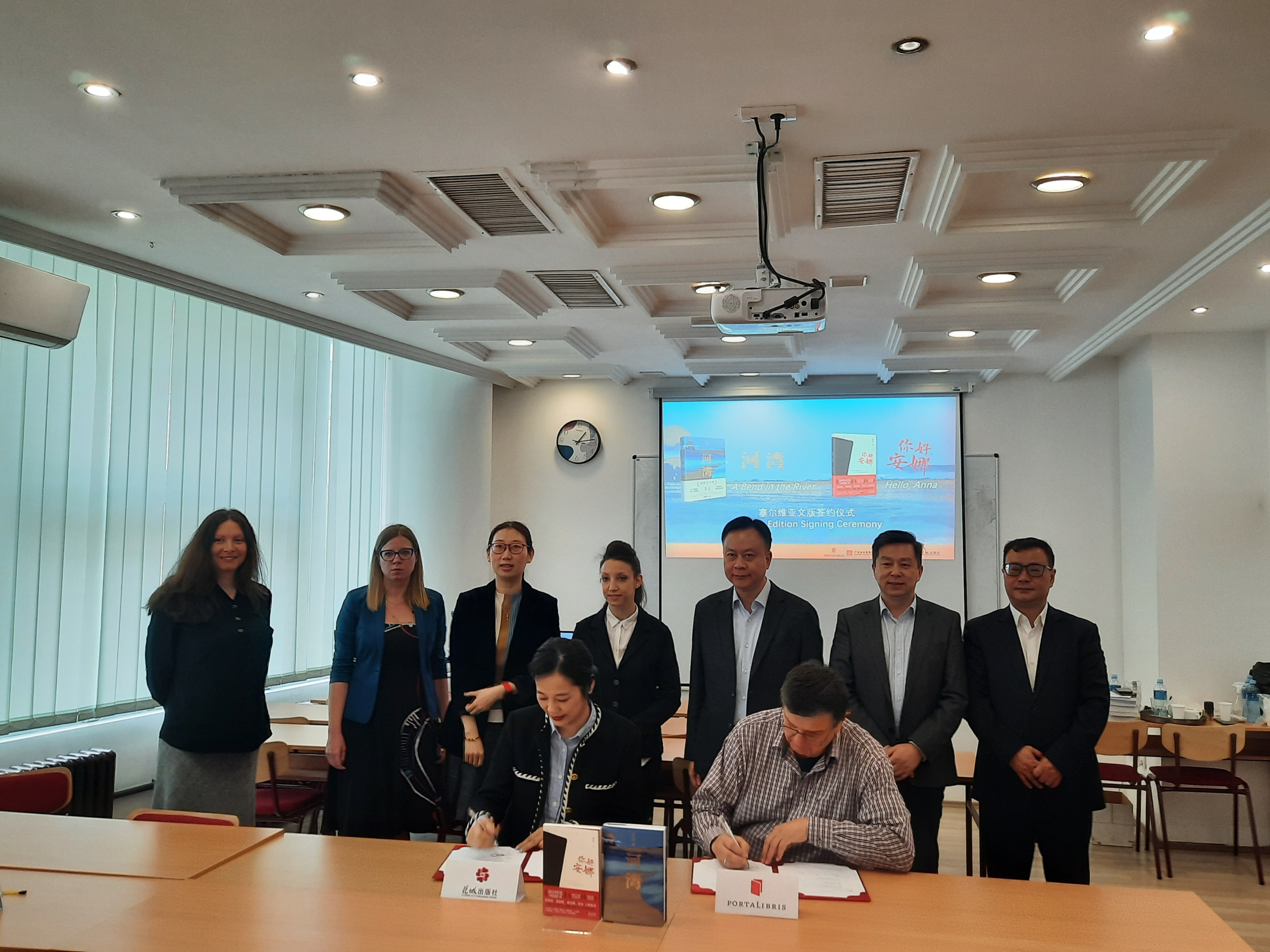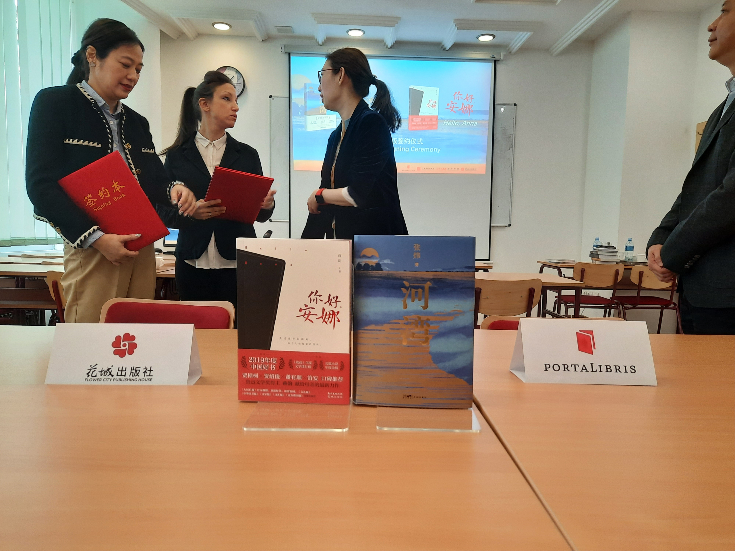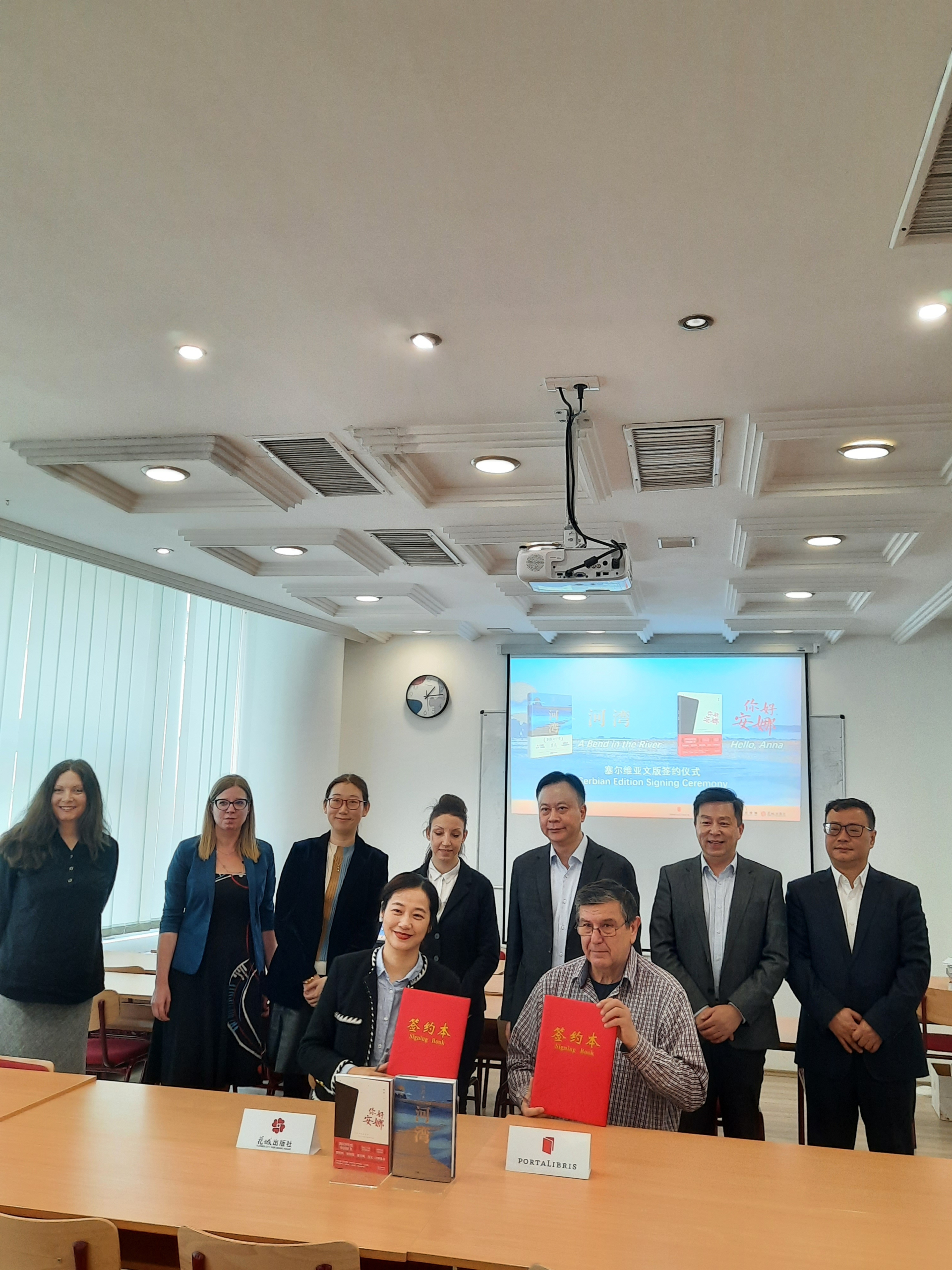 Порталибрис већ има веома успешну сарадњу са кинеским издавачима, с обзиром на то да је до сада превео и објавио осам наслова књижевника из Кине, укључујући и дела нобеловца Мо Јана. На данашњем састанку потписан је уговор о превођењу и објављивању још две књиге: A Bend in the River и Hello, Anna.